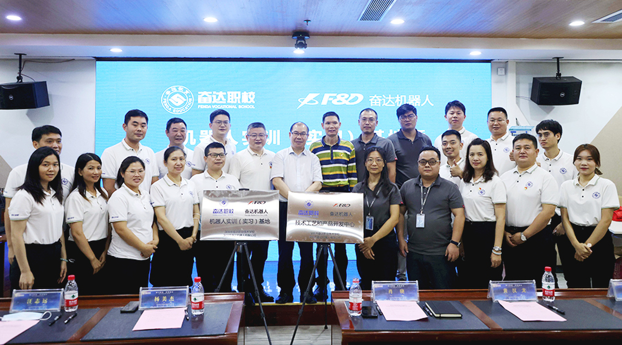 2022年5月19日,深圳市完美体育·WM职业技术学校与深圳市完美体育·WM机器人有限公司机器人实训(实习)基地暨技术工艺和产品开发中心授牌仪式在深圳市完美体育·WM职业技术学校实训楼一楼会议室举行。
