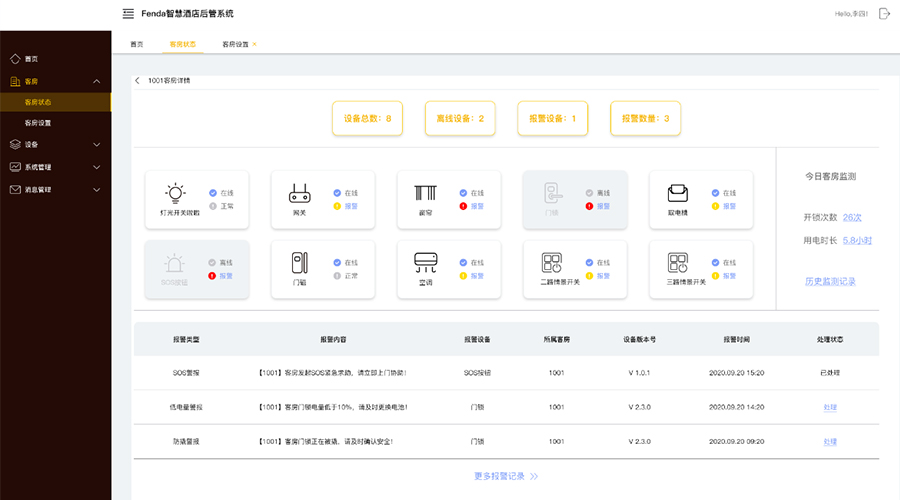 能源节约与经济效益双收。依托数字及系统化管理,实现机器人送水送餐,智能判断飞房问题,防止酒店飞单,实时提醒客户服务需求,节省故障房的人工巡检时间,减少人工成本。