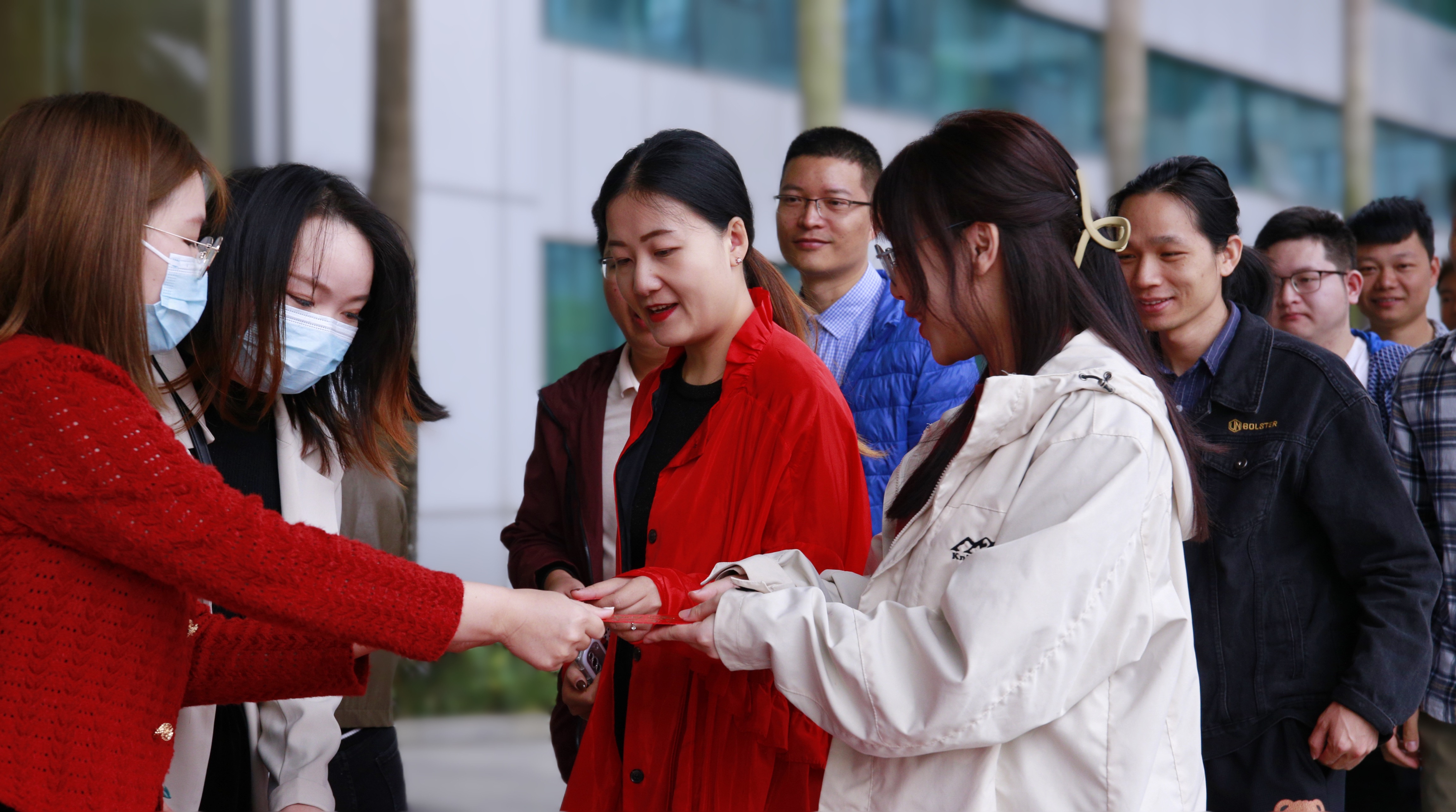 (东莞园区:开工仪式)启封利是,迎接美好。在开工仪式的尾声,公司延续了往年的传统,向全体员工派发开工利是,寓意着新的一年里事业顺利,财运亨通。