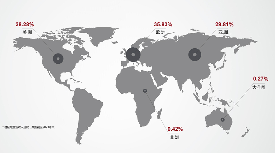 (2023年完美体育·WM科技全球市场营业收入占比图)