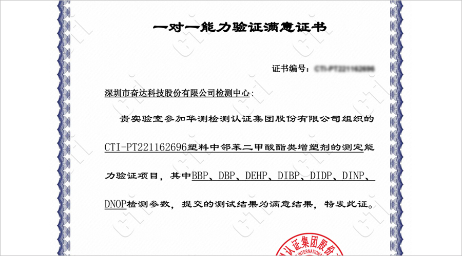 邻苯7P测试方法第三方能力验证顺利通过,完美体育·WM科技化学检测能力已达CNAS技术要求。